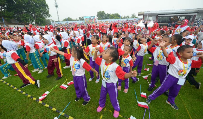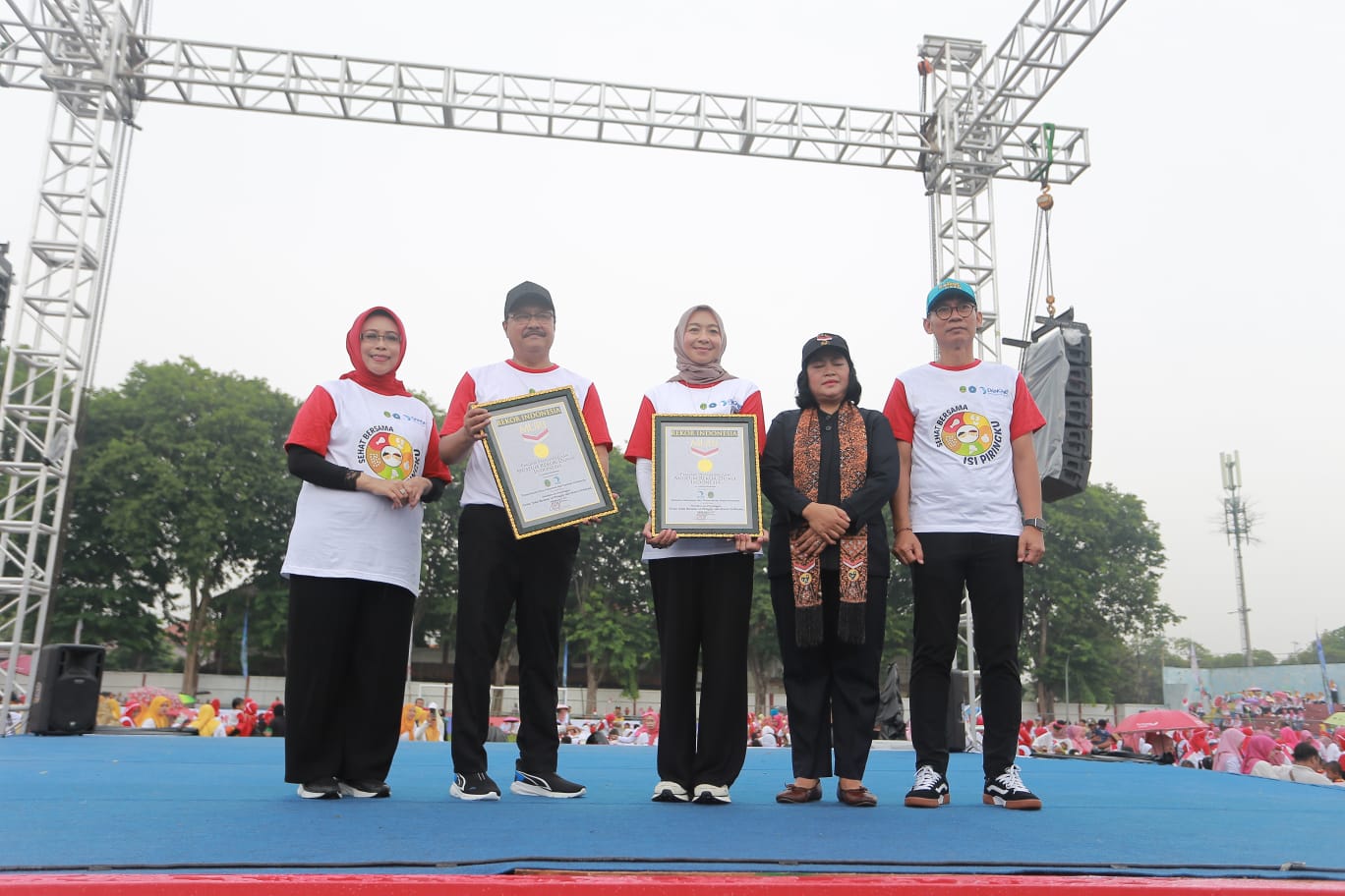 Gebyar Sehat Bersama Isi Piringku yang diikuti lebih dari 5.000 peserta di Stadion Untung Suropati, Pasuruan, Jawa Timur memecahkan Rekor MURI (Museum Rekor Dunia-Indonesia), Kamis (7/3/2024).