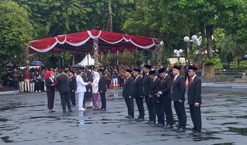 Sejumlah pejabat kepala daerah nampak sudah memadati tenda upacara yang tersebar di beberapa area Taman Surya.