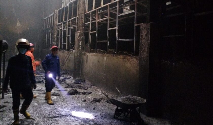 Petugas menjelaskan bahwa dalam pabrik seluas 80 meter x 50 meter tersebut, objek yang terbakar merupakan plastik barang jadi.