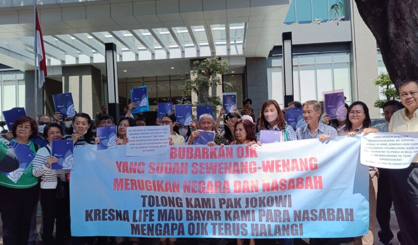 Oen Haow perwakilan nasabah asuransi mengatakan, aksi itu dilakukan seiring dengan banyaknya masyarakat yang haknya tidak terpenuhi oleh Kresna Life. Karena izin usaha perusahaan asuransi itu dicabut oleh OJK.