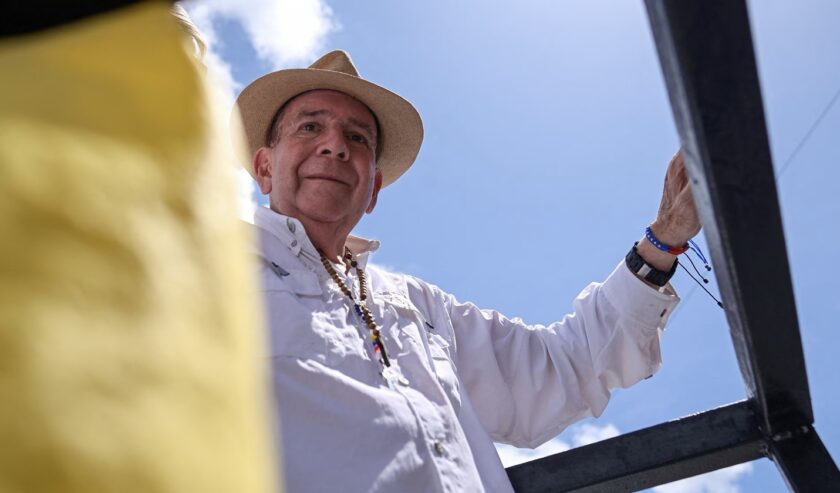 Edmundo Gonzalez mantan calon presiden dari partai oposisi Venezuela terlihat selama rapat umum kampanye untuk pemilihan presiden di Valencia, Carabobo, Venezuela pada 13 Juli 2024. Foto: Reuters