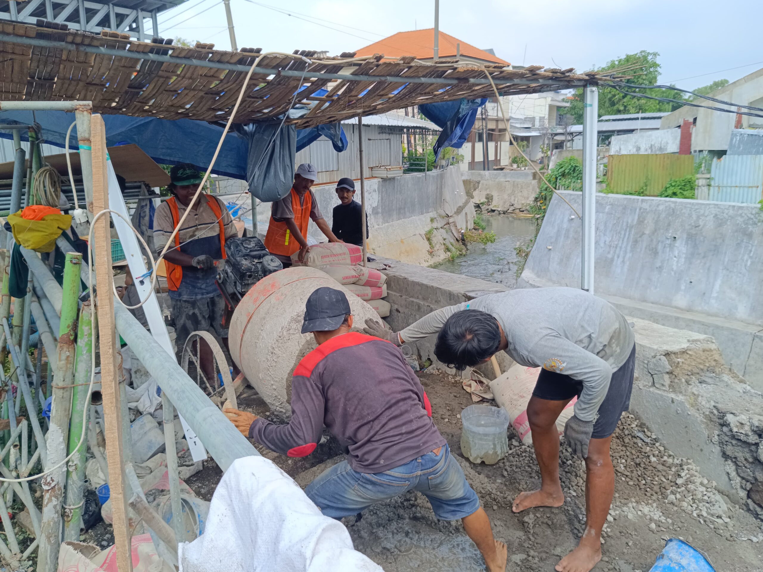 Perbaikan plengsengan Bozem Simo Hilir di Sukomanunggal, Surabaya, masih berlangsung pada Jumat (13/12/2024).