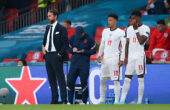 Gareth Southgate (kiri) pelatih Timnas Inggris dan Harry Maguire dalam sebuah pertandingan. Foto: Eurosport.