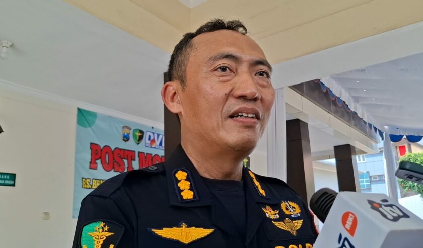 Kombes Pol M. Khusnan Marzuki Kabiddokkes Polda Jatim saat diwawancara awak media, Senin (6/10/2025). Foto: Akira suarasurabaya.net