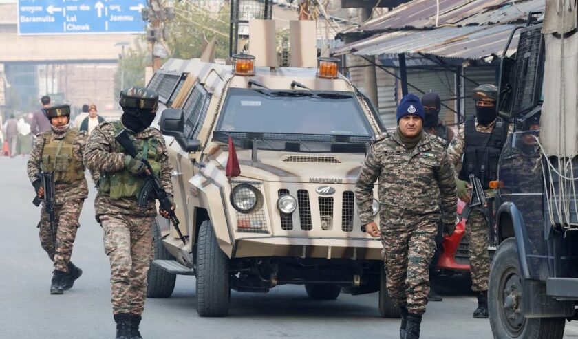Pasukan keamanan tiba di dekat lokasi ledakan di dalam kantor polisi di Srinagar, Kashmir, India, Sabtu (15/11/2025). Foto: Reuters