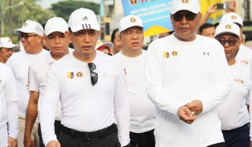 Akhmad Munir Ketua Umum PWI Pusat (kanan) bersama Jenderal Polisi Listyo Sigit Prabowo Kapolri saat acara Pencanangan Hari Pers Nasional (HPN) 2026 di Alun-alun Kota Serang, Banten, Minggu (30/11/2025). Foto: PWI Pusat