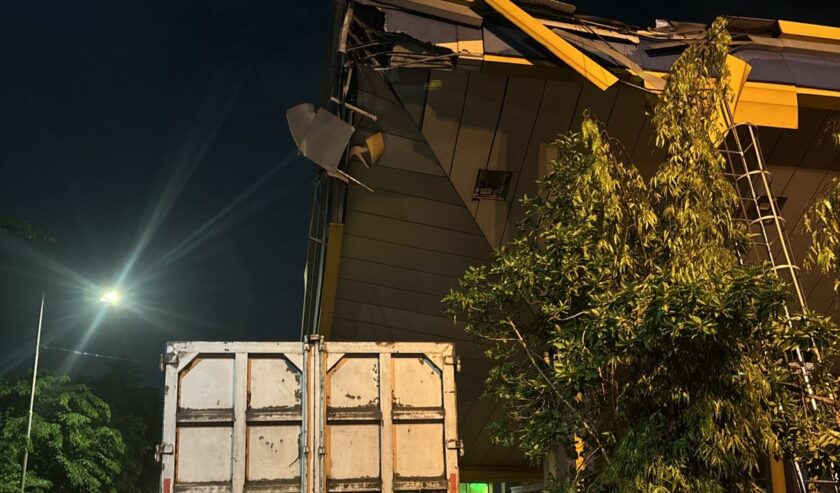 “Yang baknya itu terangkat ya, paling atas sendiri itu benar-benar nabrak atap kami. Jadi tahu-tahu setelah kejadian itu pihak gerbang langsung melaporkan karena atapnya dikatakan mau ambruk,” ujarnya.