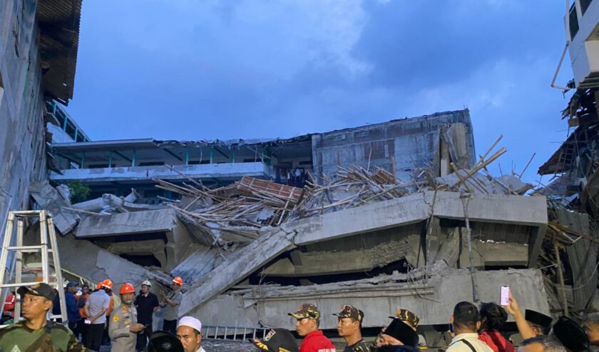 Muji menjelaskan, ada empat lapis konstruksi yang ambruk dan membentuk tumpukan. Hal ini yang kemudian menyulitkan petugas untuk mengevakuasi korban terjebak reruntuhan.