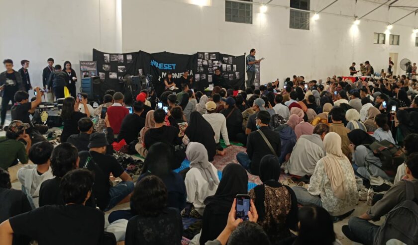 Diskusi dan bedah buku Reset Indonesia karya Farid Gaban, Dandhy Laksono, Yusuf Priambodo, dan Benaya Harobu berlangsung di Surabaya pada Sabtu (27/12/2025).