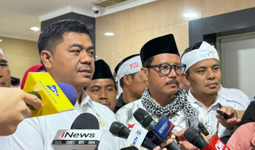 uri Ardiantoro Wamensesneg memberikan keterangan sesudah bertemu perwakilan guru madrasah swasta, Kamis (30/10/2025), di Kompleks Istana Kepresidenan Jakarta. Foto: Farid suarasurabaya.net