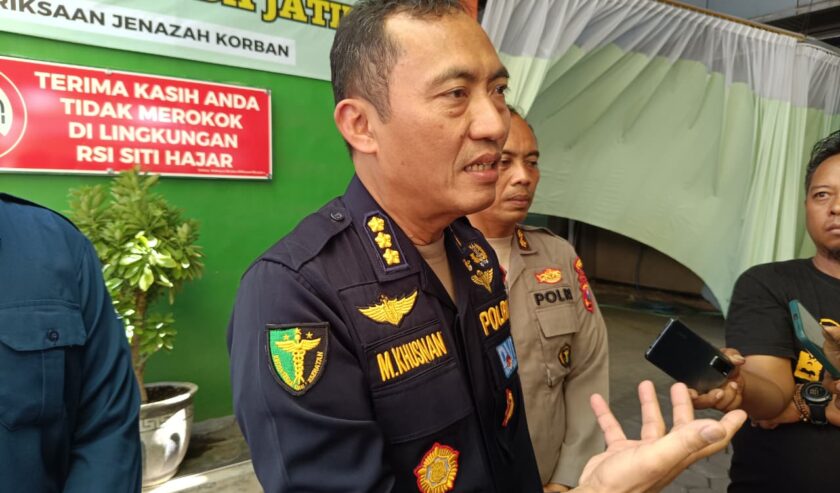 Kombes Pol Khusnan Marzuki Kabiddokkes Polda Jatim seusai meninjau Post Mortem di RSI Siti Hajar Sidoarjo, pada Kamis (2/10/2025). Foto: Risky suarasurabaya.net