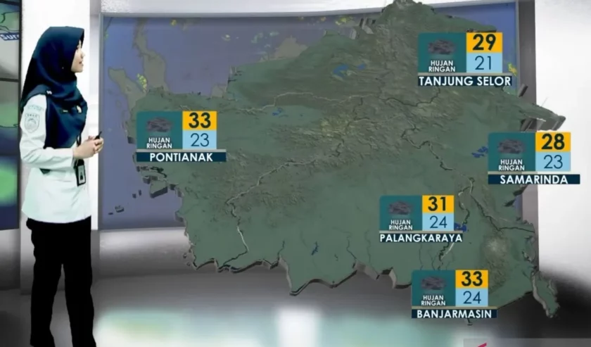 Berikutnya, daerah-daerah lain yang juga diprakirakan diguyur hujan intensitas ringan adalah Banjarmasin, Kalimantan Selatan; Mamuju, Sulawesi Barat; Palu, Sulawesi Tengah; Gorontalo; Kendari, Sulawesi Tenggara; serta Ternate, Maluku Utara; Ambon, Maluku; Sorong, Papua Barat Daya; Jayapura, Papua; Jayawijaya, Papua Pegunungan; dan Merauke, Papua Selatan.