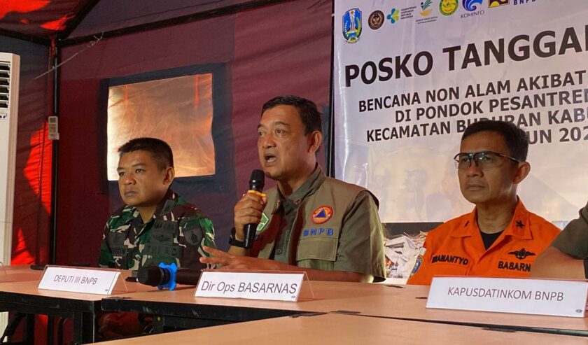Kemarin malam, Minggu (5/10/2025) BNPB menyebut beton bangunan yang ambruk ternyata terhubung dengan gedung lama yang posisinya saat ini mengalami kemiringan.