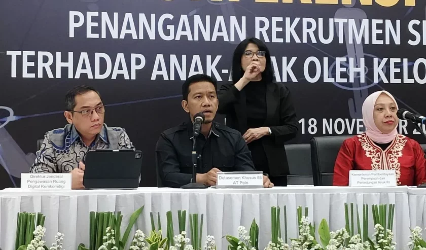 Ia mengatakan, kelima tersangka tersebut menggunakan modus merekrut anak dan pelajar melalui ruang digital, di antaranya media sosial, game online, aplikasi perpesanan instan, dan situs-situs tertutup.