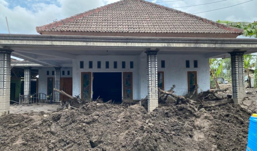 Rumah warga di Dusun Gumukmas Desa Supiturang, Kecamatan Pronojiwo, Kabupaten Lumajang, Jawa Timur rusak akibat tertimbun material vulkanik Gunung Semeru, Kamis (20/11/2025). Foto: Wildan suarasurabaya.net