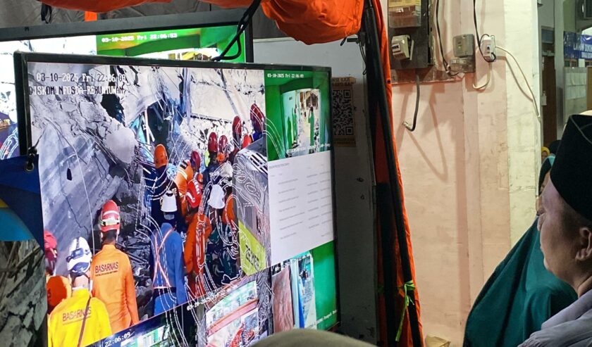 “Yang alat berat itu di antara sektor A1 sama A4 (bagian depan reruntuhan). Itu yang menggunakan alat berat. Kemudian yang ada korbannya dievakuasi itu, ada di A2 mendekati A3 (bagian belakang reruntuhan),” jelas Nanang.