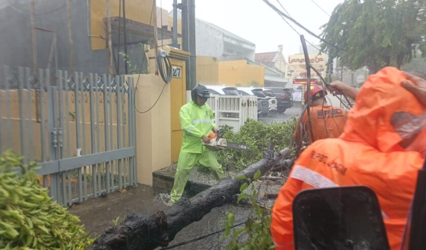 Proses penanganan pohon tumbang oleh BPBD Kota Surabaya, Rabu (29/10/2025). Foto: BPBD Kota Surabaya