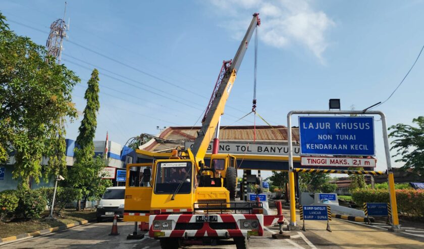 “Ini menyebabkan atap Gerbang Tol yang berada di atas tiga gardu tol yang sedang beroperasi mengalami kerusakan sehingga tidak dapat melayani transaksi,” jelasnya.