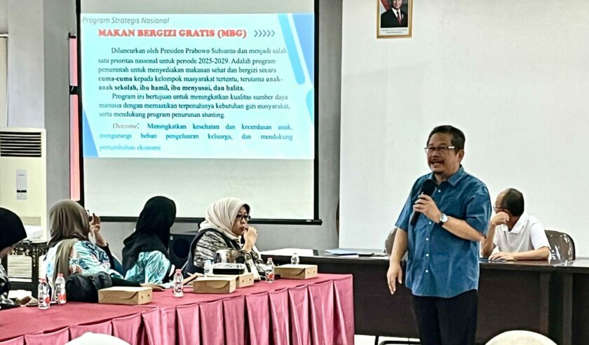 Andriyanto Kepala Badan Riset dan Inovasi Daerah (BRIDA) Provinsi Jawa Timur dalam kegiatan Sosialisasi dan Penyamaan Persepsi Satuan Pengelola Program Gizi (SPPG) di Surabaya, Minggu (5/10/2025). Foto: Kadin Jatim