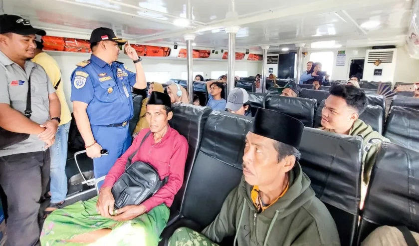 Herlan Apriliyanto Kepala KSOP Kelas IV Panarukan Situbondo cek penumpang kapal cepat mudik gratis sebelum bertolak dari Pelabuhan Jangkar Situbondo, Selasa (18/3/2025). Foto: Antara
