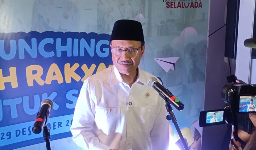 Saifullah Yusuf Menteri Sosial (Mensos) Republik Indonesia dalam pra launching Sekolah Rakyat di Graha Unesa, Surabaya, pada Senin (29/12/2025). Foto: Risky suarasurabaya.net
