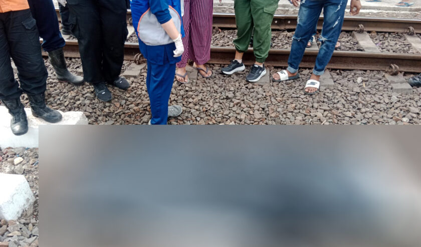 Pemotor meninggal dunia diduga karena terlibat kecelakaan dengan kereta api di perlintasan Margorukun, Surabaya pada Sabtu (25/10/2025). Foto: Command Center 112 Surabaya