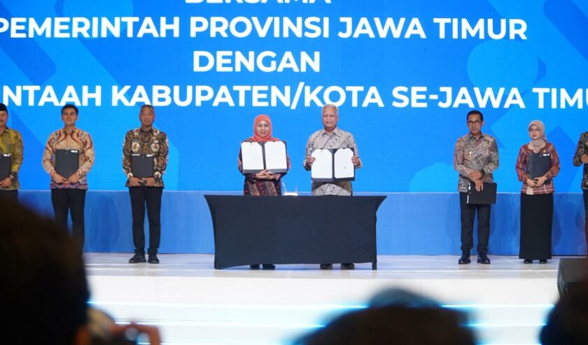 Penandatanganan nota kesepakatan itu dilaksanakan di Dyandra Convention Center Surabaya, Kamis (9/10/2025), dalam acara yang juga menghadirkan Focus Group Discussion (FGD) Tata Kelola yang Baik pada Pengadaan Barang dan Jasa di Provinsi Jatim.