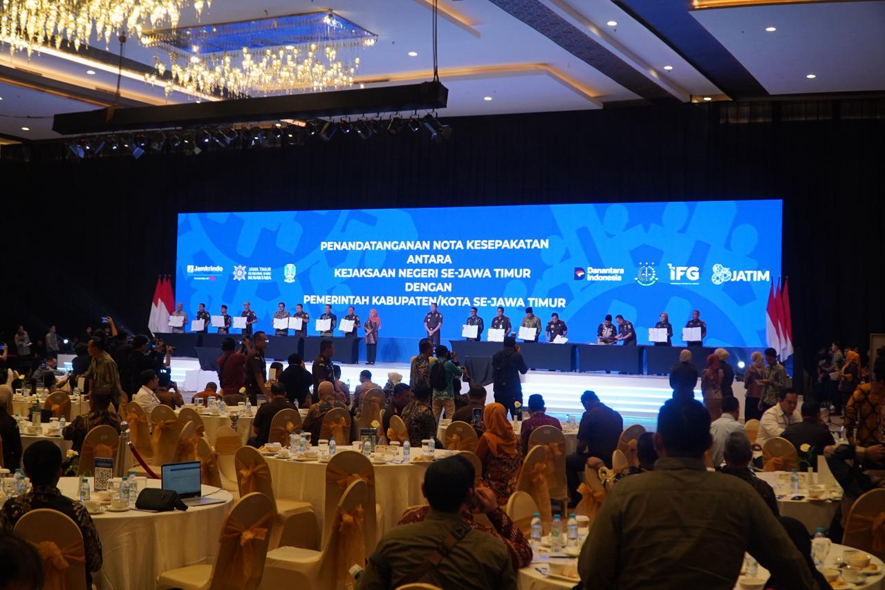 Didahului dengan penandatanganan antara Khofifah Gubernur dengan Dr. Kuntadi Kepala Kejaksaan Tinggi (Kajati) Jatim, baru kemudian disusul Bupati / Wali Kota hingga Sekda, dengan Kepala Kejaksaan Negeri (Kajari) masing-masing daerah.