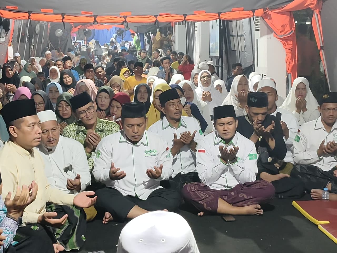 Doa bersama keluarga korban dilakukan di tenda peristirahatan milik BPBD. Doa bersama ini dilakukan setiap hari setelah salat magrib. Foto: Akira suarasurabaya.net