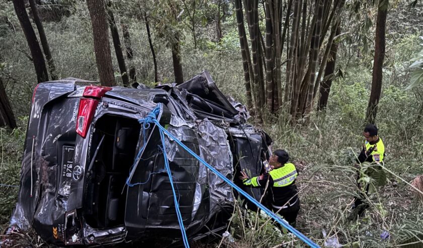 “Pada kondisi jalan tanjakan dan turunan tajam kendaraan Innova Reborn diduga mengalami gagal fungsi rem, kemudian menabrak pembatas jalan sebelah kiri, kemudian oleng ke kanan dan melaju masuk jurang di sebelah kanan dengan kedalaman sekitar 40 meter,” kata AKP Muhammad Yogie dalam keterangannya yang diterima suarasurabaya.net, Senin (6/10/2025).