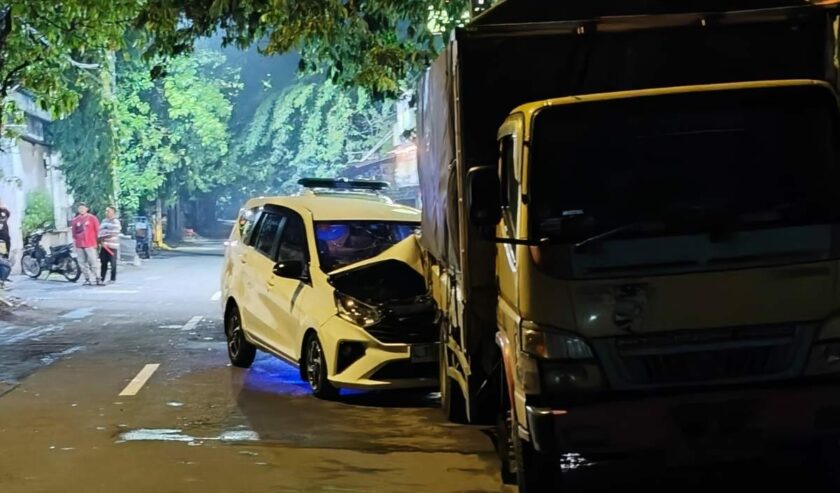 Mobil Sigra tabrak truk yang sednag terpakir di Jalan Pagesangan, Surabaya, Kamis (13/11/2025). Foto: Kanit Lantas Polsek Jambangan