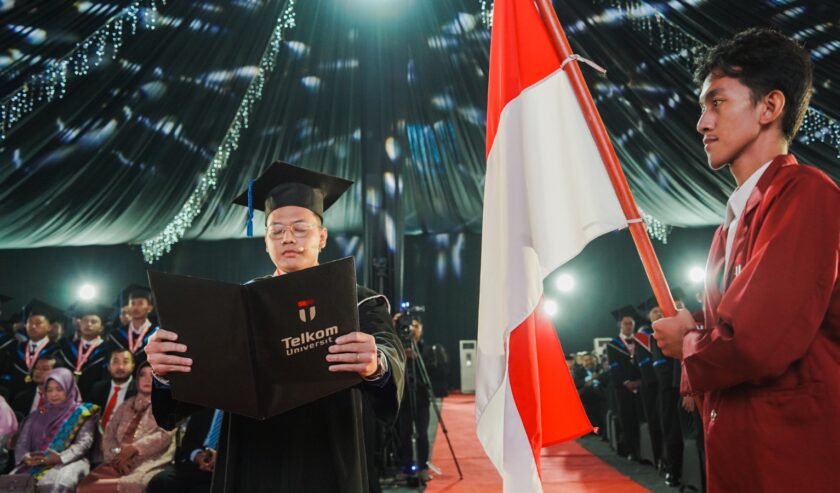 Di tengah suasana tersebut, prosesi wisuda tetap berlangsung khidmat. Rektor Telkom University, Prof. Suyanto, secara resmi mewisuda 543 lulusan program sarjana (S1) dari berbagai program studi. Dalam sambutannya, Prof. Suyanto menegaskan pentingnya wisuda sebagai awal perjalanan baru bagi para lulusan.
