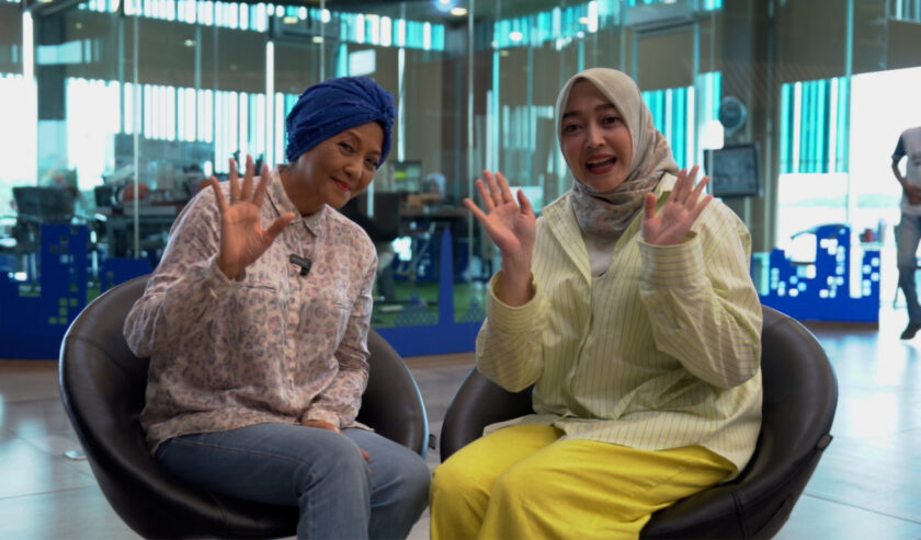 Yuliani (kiri) pendengar SS yang menemukan gelang perhiasan seberat 25 gram milik Monica (kanan) saat keduanya bertemu di Radio Suara Surabaya, Kamis (27/11/2025), Foto: Yustito suarasurabaya.net