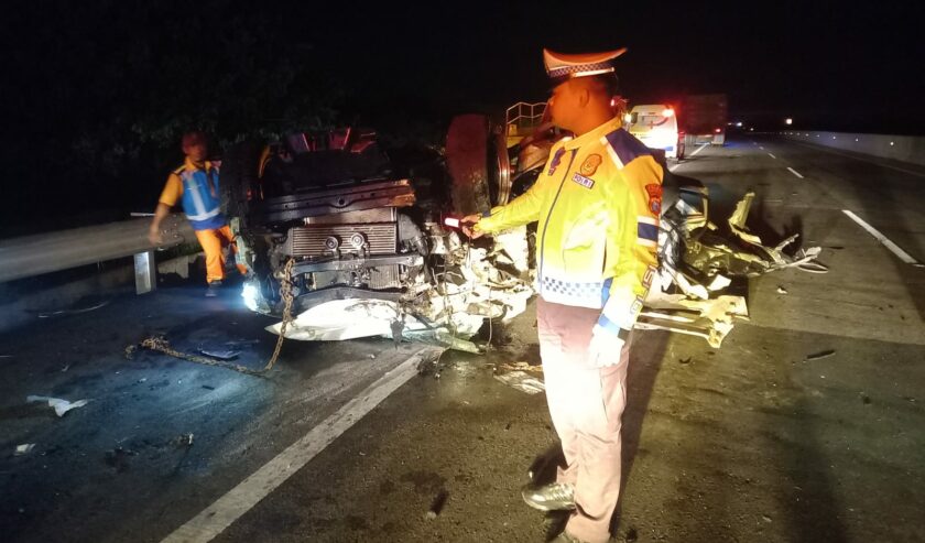 Kecelakaan lalu lintas terjadi di KM 641+600 A ruas Tol Caruban–Nganjuk pada Senin (17/11/2025) sekitar pukul 03.00 WIB.