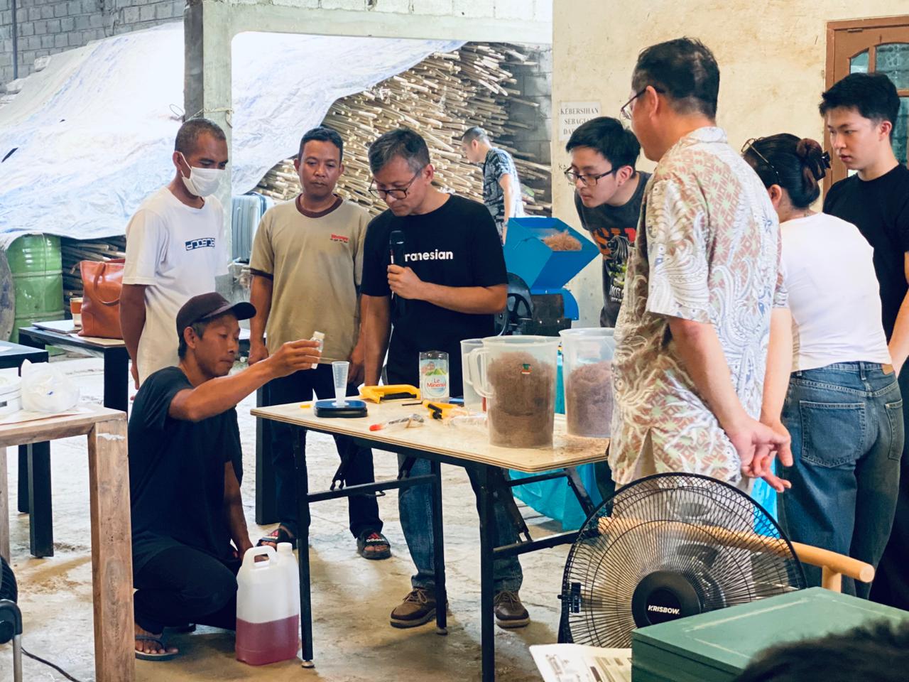 Melihat kondisi itu, tim memutuskan mengembangkan material substitusi maupun komplementer sebagai alternatif rotan. Mereka memilih serat kelapa yang dikombinasikan dengan resin, karena prosesnya lebih sederhana dan bisa dikerjakan pengrajin di rumah tanpa mesin khusus.