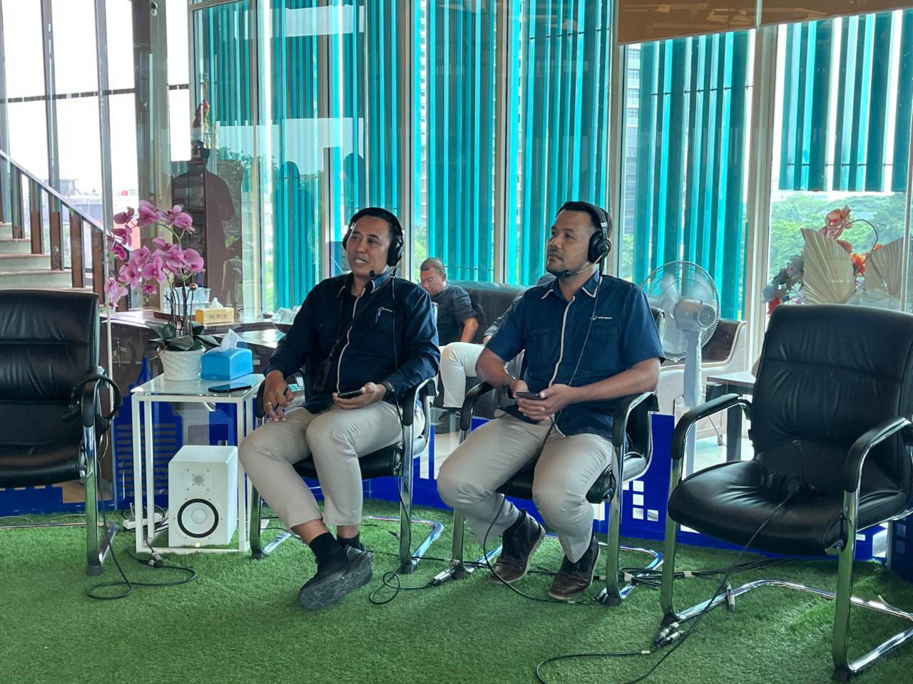 Louis Andilun Gatu (kiri) Manajer Proyek Perpipaan Operasi PDAM Surya Sembada saat on air di Radio Suara Surabaya, Senin (24/11/2025). Foto: Billy suarasurabaya.net