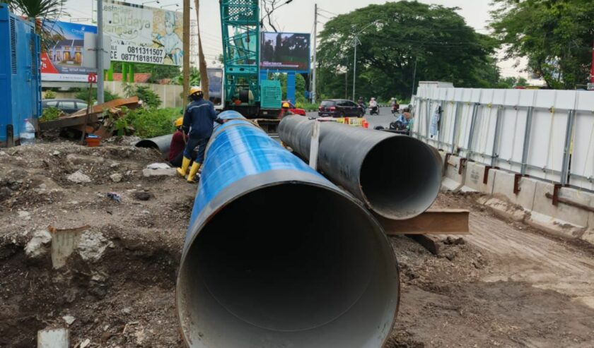 Perumda Air Minum (PDAM) Surya Sembada Surabaya tengah mengebut pembangunan jaringan pipa baru berdiameter besar di kawasan Bundaran Waru.