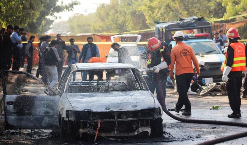 Sebuah serangan pengeboman bunuh diri di Islamabad ibu kota Pakistan pada Selasa (11/11/2025), menewaskan 12 orang. Insiden ini menandai lonjakan kekerasan militan yang membuat Khawaja Muhammad Asif Menteri Pertahanan Pakistan menyatakan bahwa negara itu berada dalam “keadaan perang”.