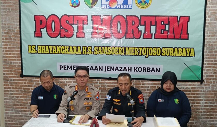 “Perlu saya tegaskan kembali bahwa Polda Jatim sejauh ini telah memberikan pernyataan dari Bapak Kapolda sendiri, bahwa proses hukum akan kami lakukan,” katanya dalam konferensi pers di Post Mortem RS Bhayangkara Surabaya, pada Selasa (7/10/2025) malam.