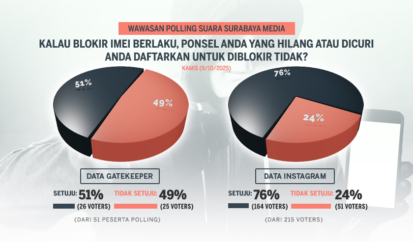 Dalam diskusi di radio yang dicatat Tim Gate Keeper Suara Surabaya, baik yang mengudara maupun tidak, sebanyak 26 dari 51 (50,9 persen) pendengar setuju untuk mendaftarkan pemblokiran IMEI ponsel-nya yang hilang ke Komdigi. Sedangkan sisanya, 25 pendengar (49,1) persen memilih tidak mendaftarkan.