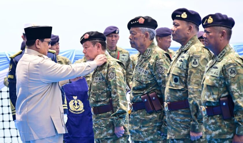 Prabowo Subianto Presiden, hari ini, Kamis (2/10/2025), menganugerahkan pangkat istimewa kepada 11 purnawirawan TNI, pada acara Presidential Inspection, di atas Kapal Perang Republik Indonesia (KRI) Dokter Radjiman Wedyodiningrat-992 yang berlayar di Teluk Jakarta.