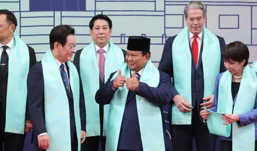 Adapun sebelum sesi kedua AELM KTT APEC 2025 berlangsung, Prabowo Subianto mendapatkan posisi di barisan depan tepat di samping Lee Jae-myung Presiden Korea Selatan selaku tuan rumah dan ketua Konferensi Tingkat Tinggi Asia-Pacific Economic Cooperation (KTT APEC) 2025 pada sesi foto bersama saat hari ke-2 KTT APEC di Gyeongju, Sabtu, (1/11/2025).