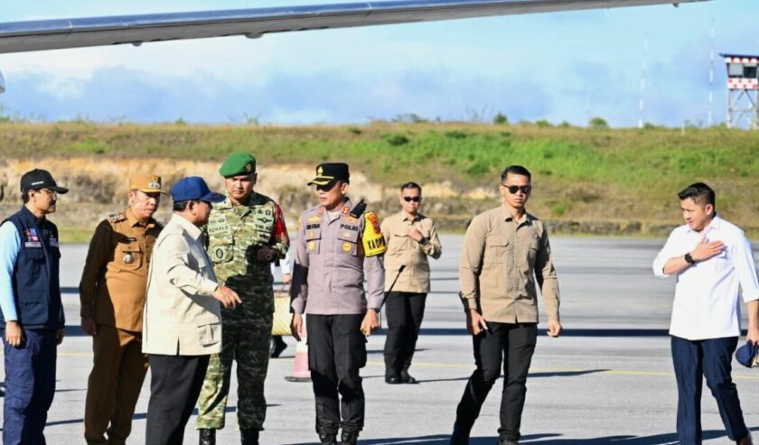 Prabowo Subianto Presiden RI tiba di Kabupaten Tapanuli Tengah, Provinsi Sumatra Utara, pada Senin, 1 Desember 2025, untuk meninjau langsung penanganan dampak banjir yang melanda wilayah tersebut. Foto: BPMI Setpres