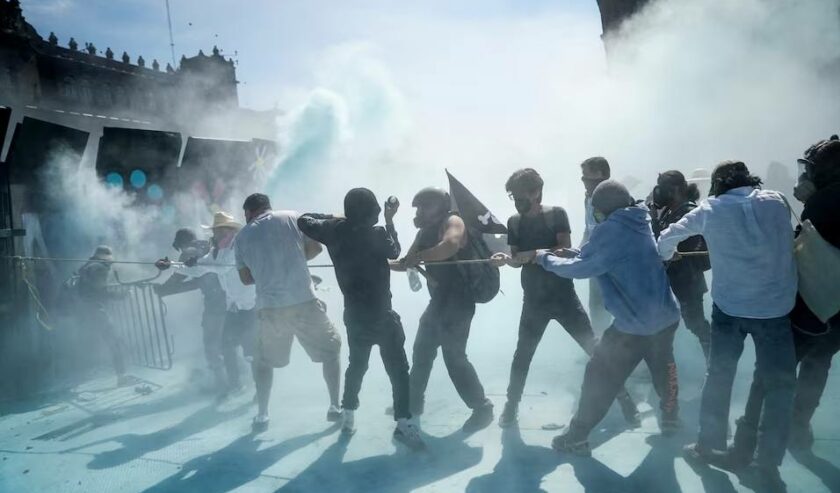 Di Mexico City, sekelompok demonstran merobohkan pagar di sekitar Istana Nasional, kediaman Claudia Sheinbaum Presiden, yang memicu bentrokan dengan polisi anti huru hara dan penggunaan gas air mata, menurut saksi mata Reuters.