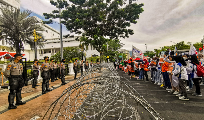 “Sekitar pukul 14.00 WIB seluruh massa aksi sudah berkumpul di depan Kantor Gubernur Jawa Timur untuk melakukan orasinya menyampaikan aspirasi,” pungkas Jazuli.