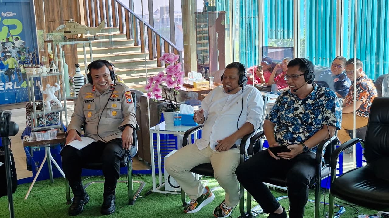 (Dari kirike kanan) AKBP Wibowo Kabag Ops Polrestabes Surabaya, Ahmad Zaini Kepala Satpol PP Kota Surabaya, dan Trio Wahyu Bowo Kepala Dinas Perhubungan Kota Surabaya, saat onair dalam program Semanggi Suroboyo, di Radio Suara Surabaya, Jumat (26/12/2025). Foto: Akira suarasurabaya.net