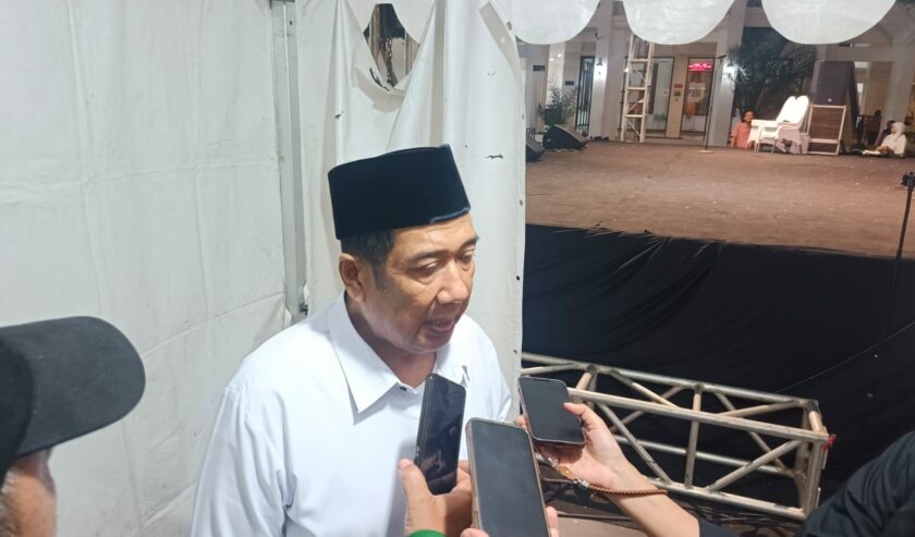 KH Masduki Toha Ketua PCNU Kota Surabaya memberikan keterangan terkait acara istighosah dan doa bersama menyambut Hari Santri Nasional, Senin (20/10/2025), di Surabaya, Jawa Timur. Foto: Istimewa