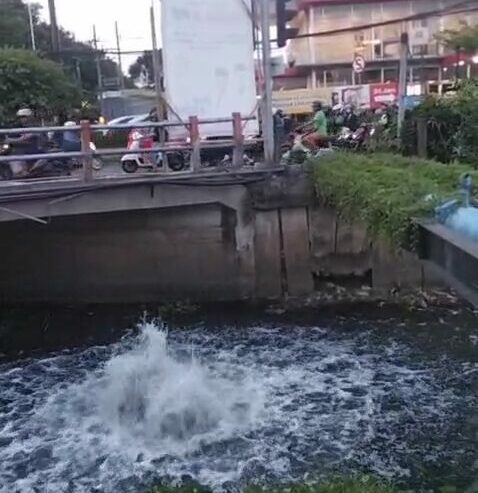 Fenomena munculnya gelembung di aliran sungai kawasan Rungkut Madya, Surabaya, sejak Kamis (16/10/2025) siang, menarik perhatian warga.