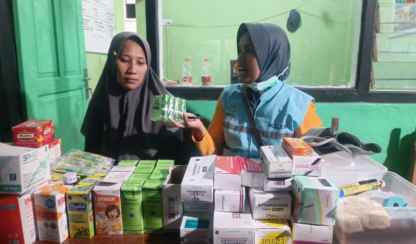 Di balik meja itu, ada Ike Yuli Suryani Koordinator Kesehatan Posko yang dengan tabah melayani ratusan pengungsi untuk pemeriksaan kesehatan dan meminta obat-obatan.