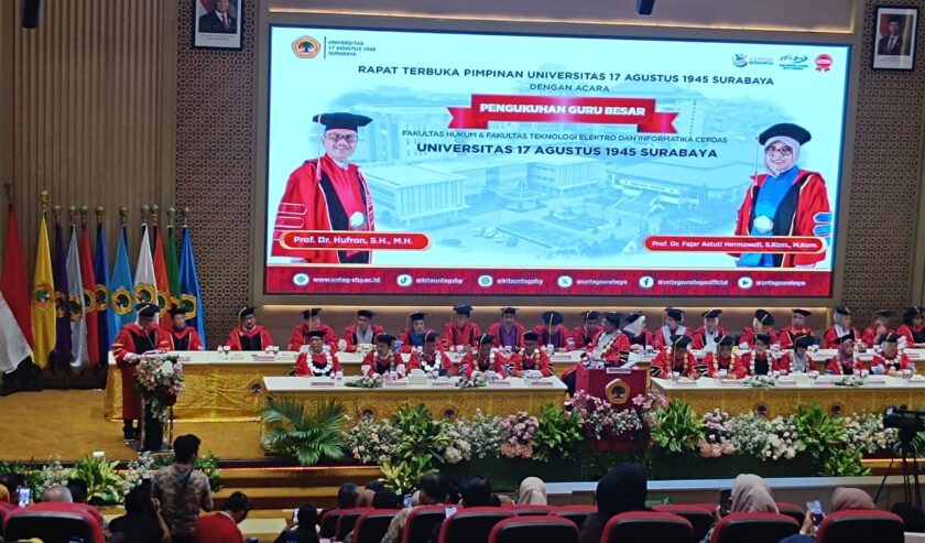 Universitas 17 Agustus 1945 (Untag) Surabaya memperkuat kontribusi akademik dengan mengukuhkan dua guru besar di bidang hukum dan teknologi.